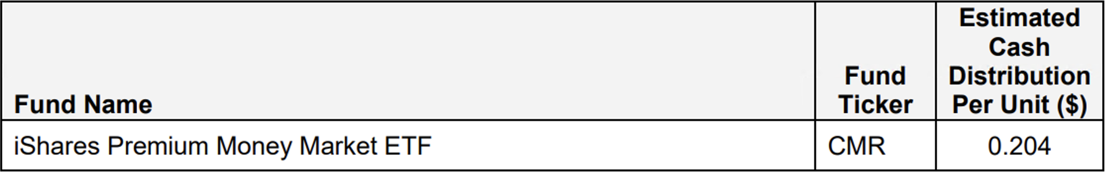 Estimated June cash distribution for iShares Premium Money Market ETF