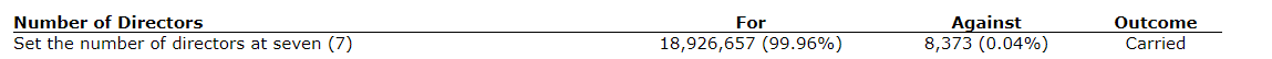 The voting results are based on the total number of votes that were cast at the AGSM.
