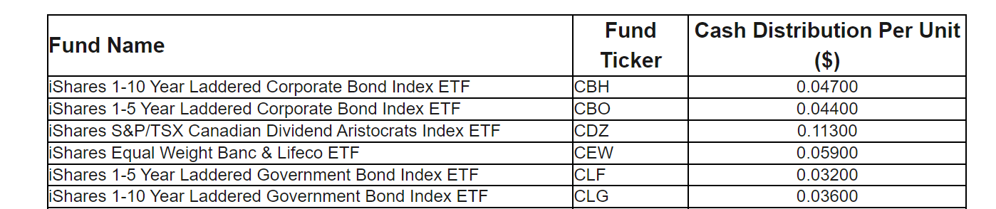 BlackRock Asset Management Canada Ltd. has declared the January, 2024, cash distributions for the iShares exchange-traded funds listed on the Toronto Stock Exchange or Cboe Canada which pay on a monthly basis. Unitholders of record of a fund on Jan. 26, 2024, will receive a cash distribution payable in respect of that fund on Jan. 31, 2024.