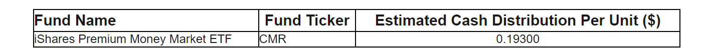 Estimated January cash distribution for iShares Premium Money Market ETF
