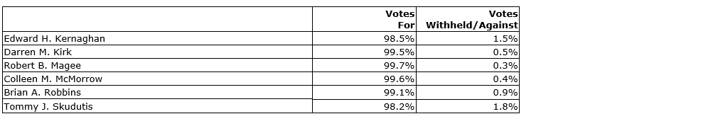 Full results of the votes are included as an appendix to this news release.