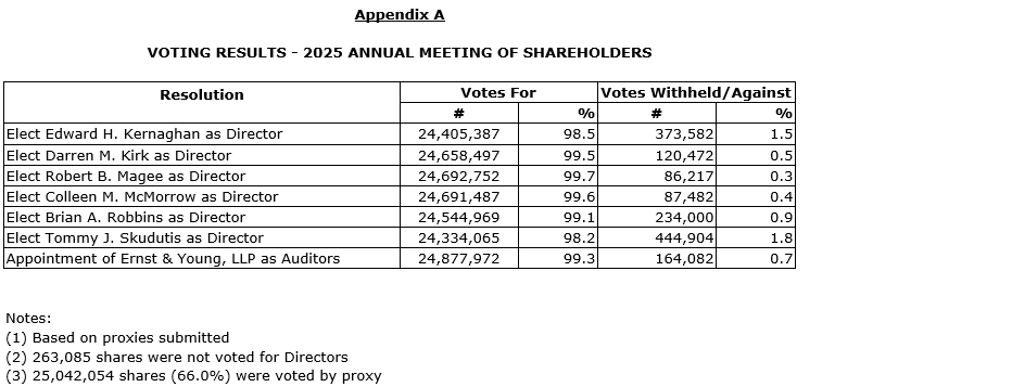 EXCO TECHNOLOGIES LIMITED 2025 ANNUAL MEETING RESULTS