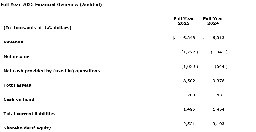 - Full year 2025 revenue of $6.34-million, which was essentially flat versus 2024.