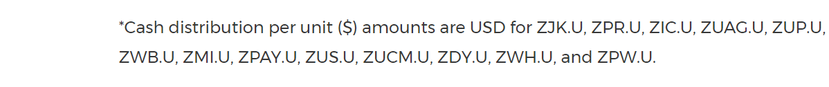 Details of the per-unit cash distribution amounts are provided in an attached table.