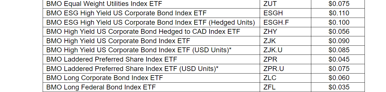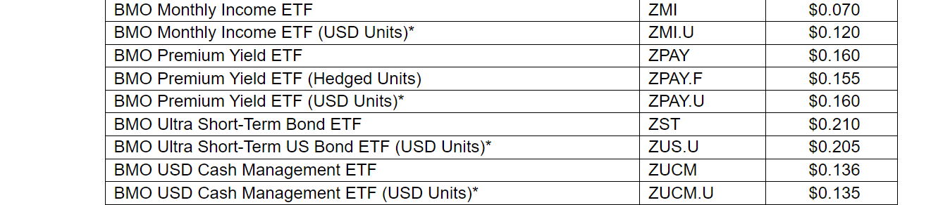 Unitholders of record of BMO USD Cash Management ETF and the ETF series of BMO Money Market Fund at the close of business on April 26, 2024, will receive cash distributions on May 2, 2024.