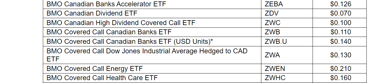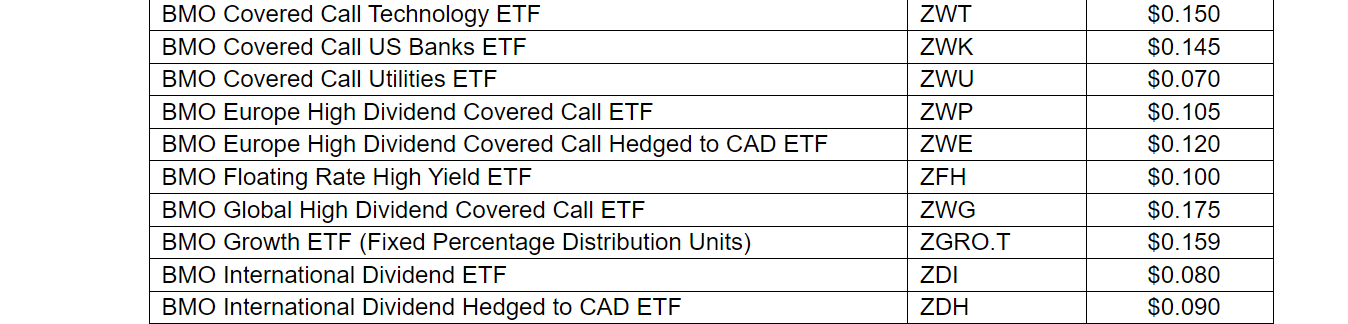 Bank of Montreal's BMO Asset Management Inc., as manager of the BMO exchange-traded funds, and BMO Investments Inc., as manager of the BMO mutual funds, have declared the April, 2024, cash distributions for unitholders of BMO ETFs and unitholders of ETF series units of the BMO mutual funds that distribute monthly, as set out in an attached table. Unitholders of record of the BMO ETFs and the ETF series at the close of business on April 29, 2024, will receive cash distributions on May 2, 2024.