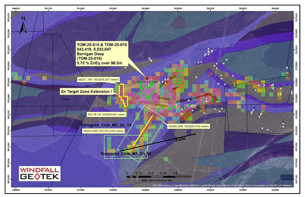 Brossard, Québec - TheNewswire - January 30, 2026 — Windfall Geotek Inc. (CSE: WIN; OTCQB: WINKF) ("Windfall" or the "Company"), a pioneer in Artificial Intelligence (AI)-driven mineral exploration since 2005, is proud to announce that recent drilling results from TomaGold Corp. (TSXV: LOT; OTCPK: TOGOF) have confirmed a major new mineralized discovery at the Berrigan Mine project, validating high-priority areas/targets(0-300 meters) identified in June 2024 by Windfall’s proprietary AI system.