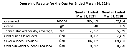 During the quarter, the construction of leach pad 3a was well progressed, with earthworks being 65 per cent complete and overall project advancement being 40 per cent complete at March 31, 2021. Pad 3a is expected to be ready to receive crushed ore in Q2 2021.